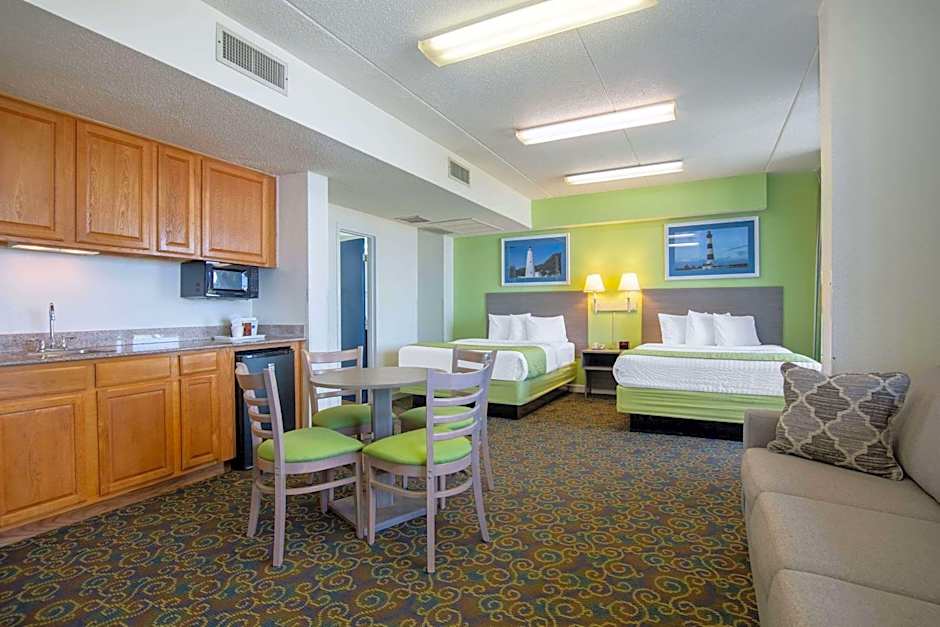 This room features a small refrigerator and microwave. A flat-screen cable TV and free WiFi are also included.